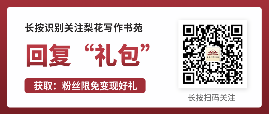 (去梨花写作书苑公众号后台回复即可领取变现好礼)